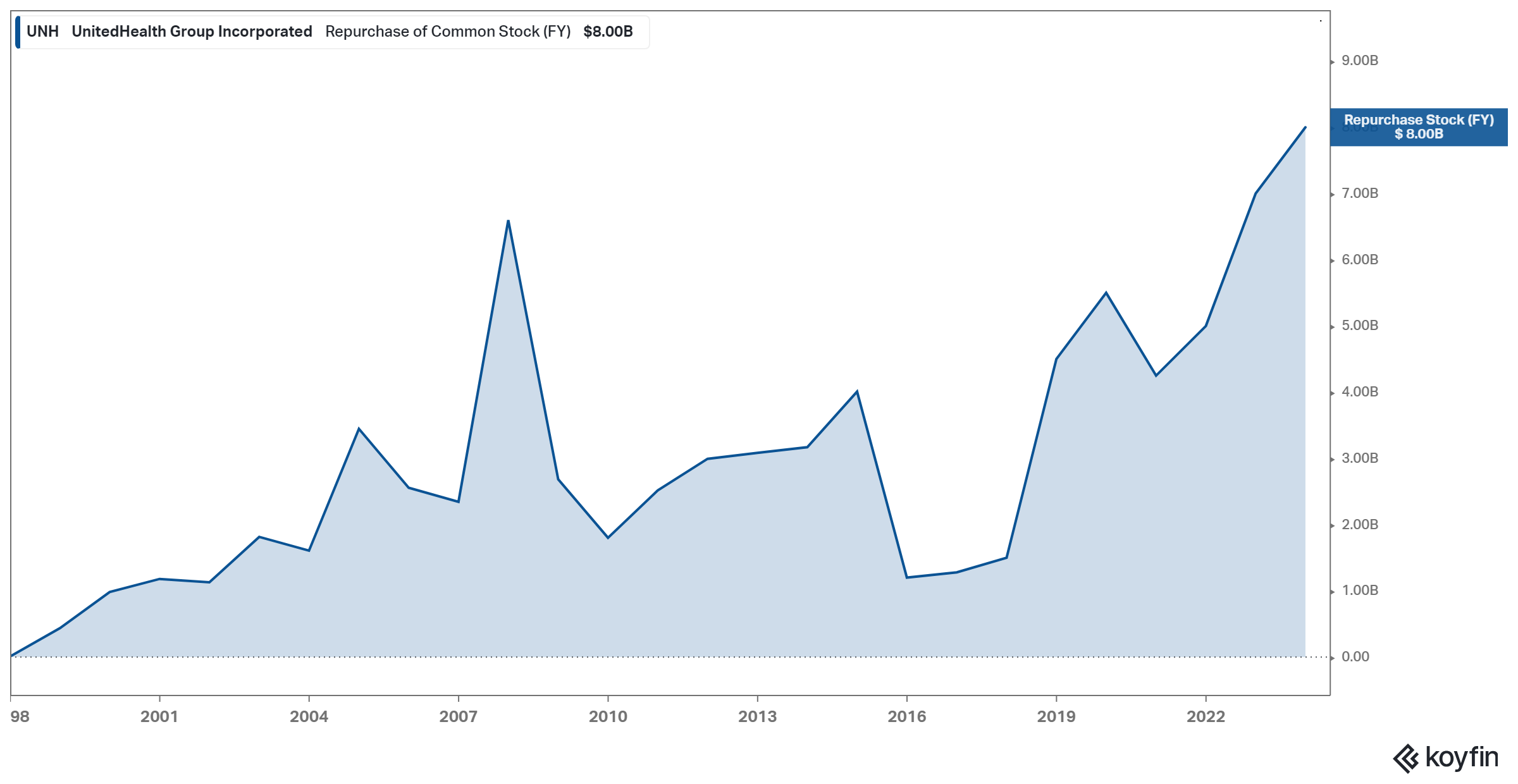 Betrachtet man das gesamte Geschäftsjahr 2023, so generierte UNH einen operativen Cashflow von 29,1 Milliarden USD, was einem Anstieg von 10,92 % gegenüber 2022 entspricht. Der Free Cashflow für das Jahr 2023 belief sich auf 25,7 Milliarden USD, ein Wachstum von 9,73 % gegenüber dem Vorjahr.