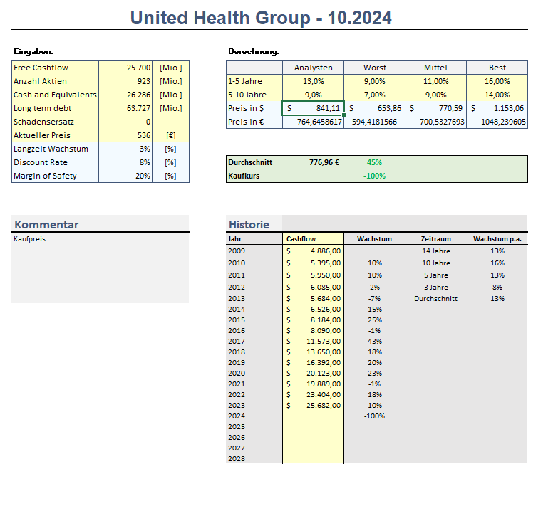Neue Kredite: UNH hat im ersten Halbjahr 2024 viele kurzfristige Schulden aufgenommen, um Geld für wichtige Investitionen zu haben. Dazu gehören 9,9 Milliarden USD an sogenannten Commercial Paper. Das sind Schuldscheine, die das Unternehmen schnell zurückzahlen muss.