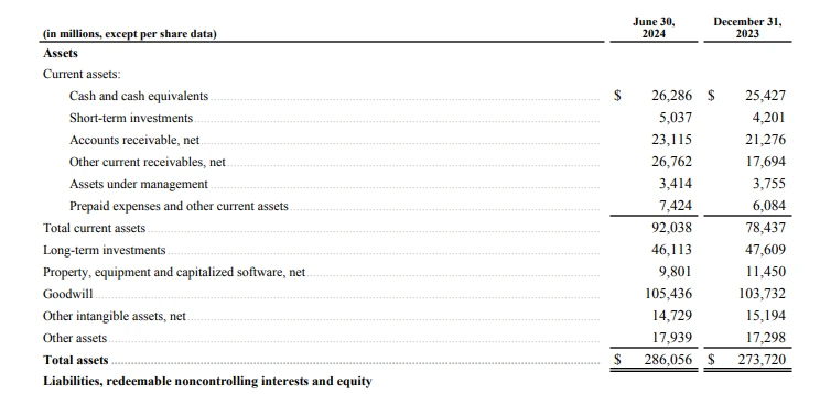 Liquide Mittel und kurzfristige Investitionen: Diese belaufen sich auf 26,3 Milliarden US-Dollar in Cash und Cash-Äquivalenten sowie zusätzliche 5,0 Milliarden US-Dollar in kurzfristigen Investitionen .