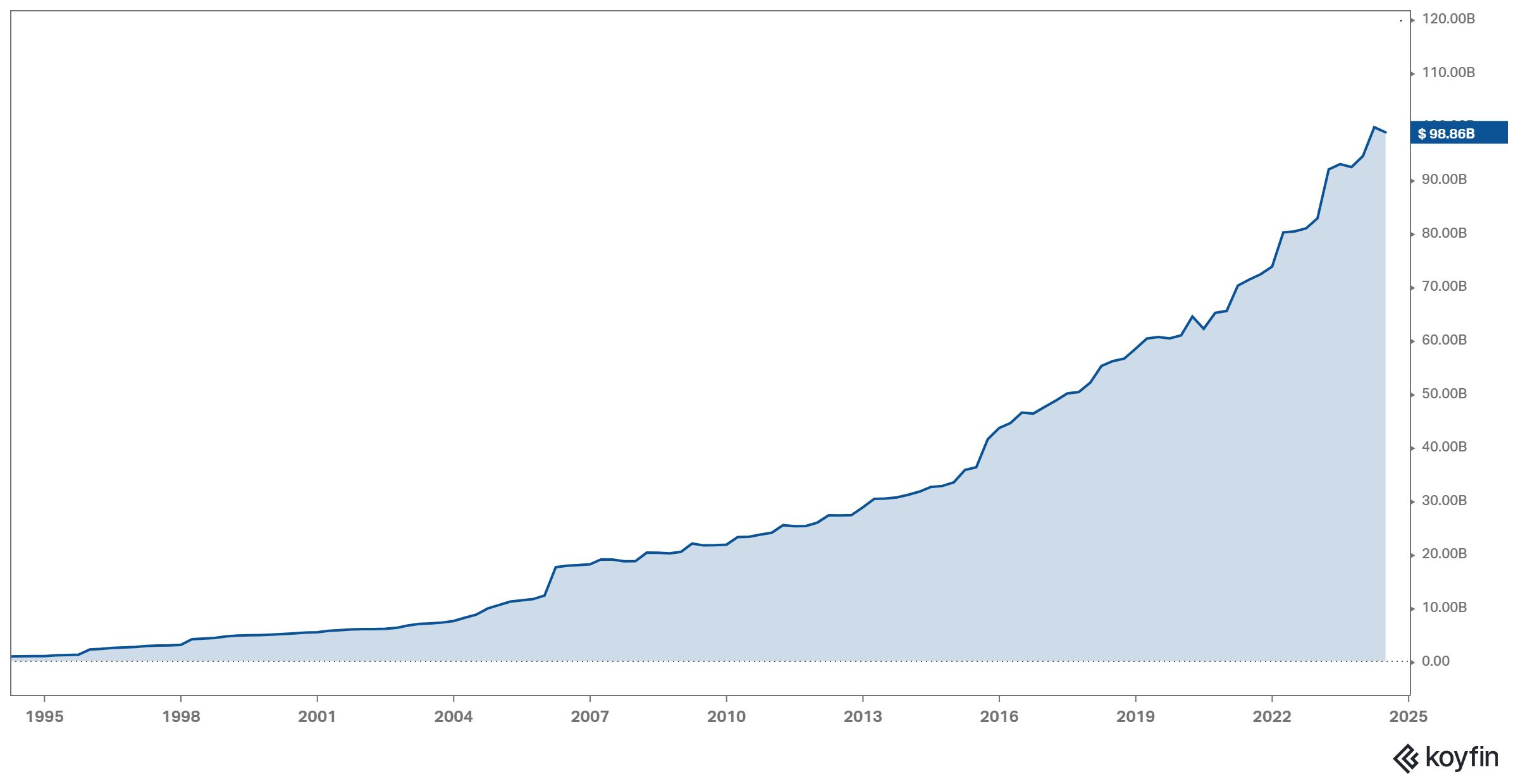 Gesamtumsatz Q2´24 = 98,9 Mrd. USD – eine Steigerung von fast 6 Mrd. USD (+ 6,46 %) zum Vorjahresquartal, da lag der Umsatz bei 92,9 Mrd. USD.